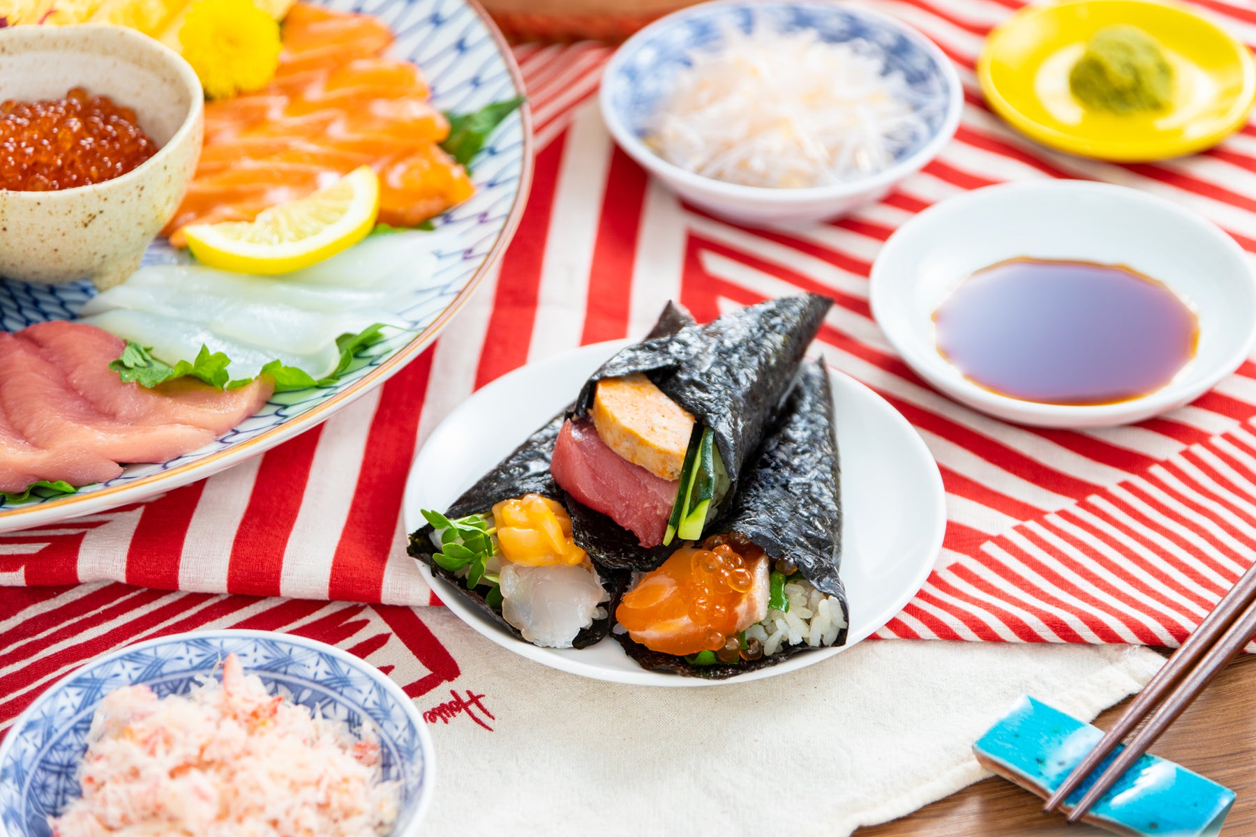 ※この商品には酢飯と海苔は付属しません。必要に合わせて「赤酢の酢飯(500g)」、「老舗伝承 有明海苔」をご購入ください。